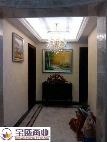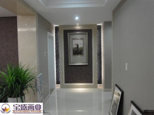 玄关是开放性空间转换到封闭性空间的缓冲带,是短暂的客人情绪修整空间,同时又是通往客厅的必经之路。一般空间较小,配画在这里起着承前启后的关键作用。