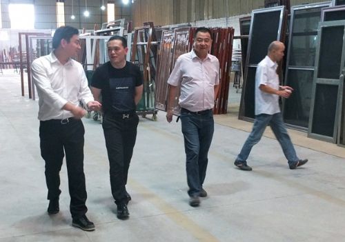 在曾董的带领下,王栋先生一行参观了亿合门业的各个车间及展厅。曾董向来宾们介绍了每个车间的主要功能、生产工艺、特色及工序,也道出了目前整个广东铝门生产厂家过程中都会存在的问题和需要改进的地方,对于曾董在门业的成就和现有产品的质量和在市场上的知名度,以及亿合门业精益求精的事业态度,王栋先生一行表示了高度认可和赞同。