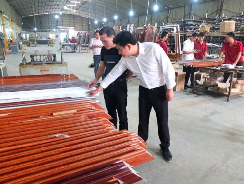 亿合门业董事长曾奎先生亲自陪同王栋先生参观亿合生产车间