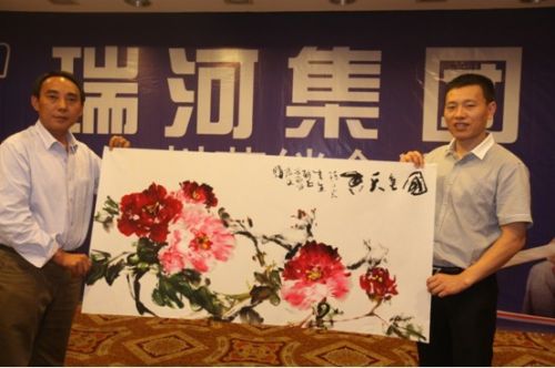 此次会议还邀请了世界*一牡丹画家、泰国曼谷画院执行院长张志文先生,张志文先生现场挥毫泼墨,绘出惊艳现场的牡丹图,并将此幅提有“国色天香”的牡丹图赠与我公司董事长陈小光。董事长也希望通过企业的“水文化”将张志文的“牡丹文化”引到瑞河,让瑞河品牌发展的更具特色,同时也希望能够吸引更多的有才、有志之士加入瑞河,将瑞河品牌更加发扬光大。