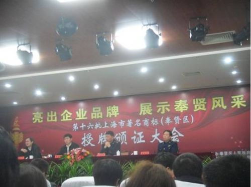 此次会议主要由工商奉贤分局为在2011年获得上海市著名商标的奉贤区企业授牌颁证,并由相关主要领导讲话,主要强调:商标发展和保护的重要性,相关单位也会加大对商标的保护力度,加强对企业商标的扶持,同时倡导企业都能够注重对自有商标的保护。