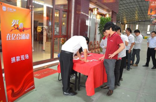 病魔无情,亿合有爱。刘达的不幸引起了公司领导的高度关注,相关领导立即向公司全体员工发起捐款倡议,呼吁全体员工尽绵薄之力,帮助刘达家庭摆脱困境。大爱无声,在捐助现场,公司领导及广大亿合员工积极响应,纷纷伸出友爱之手,涌起一股爱心捐款的热潮,大家以实际行动表达了对遭遇不幸的亿合家人的同情和关爱,谱写了佛山铝门亿合门业又一曲传递爱心的感人乐章!