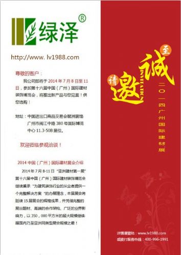 广州绿泽木业参加2014年第十六届建材博览会,邀请函!
