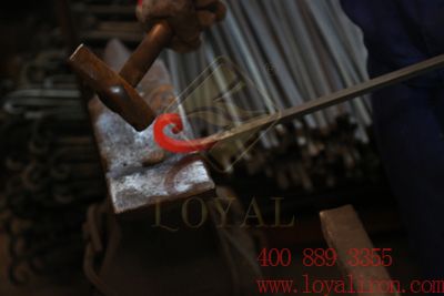 仿古铁艺通常由铁艺工匠亲手精心制造,通过设计、锻打、上漆、润色、吹干等十几道繁复的工序才能将工匠的胸中之“竹”展现出来。经验丰富又独具匠心的铁艺工匠打造出来的仿古铁制品,外表粗糙笨重,斑驳陈旧,但其中倾注了工匠的精湛技艺和精神世界而富有人文底蕴与生命力,让人砰然心动,倍感亲切。