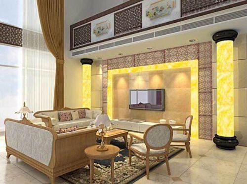 橙玉透光柱子的电视背景围边,为居室增添一份温馨明朗,消除你一天奔波的疲劳。