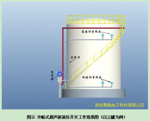 外贴式超声波液位开关是由西安展航电子科技有限公司独立自主研发、经过展航人不懈努力与追求的一种新型液位测量报警装置。