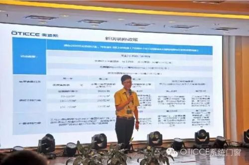 经销商大会进行到高潮阶段,奥迪斯副总经理黄楠亲自上台为大家解析新店装修政策及新品上样政策。经销商对新店装修政策及新品上样政策大力支持,现场签订单。
