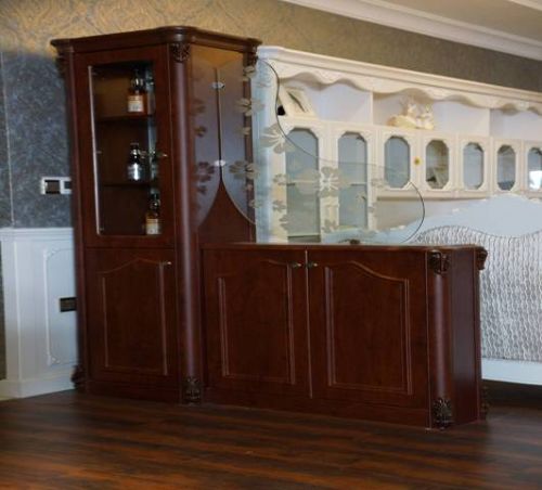 沉稳的深色,透露着厚重的文化气息。北美胡桃木的暗色花纹,交织成美式玄关柜错落有致的纹理。带玻璃门的陈列格,清晰呈现你的品味与格调;透明玻璃板曲线优美灵动,在半朦胧中将居室空间合理划分,让玄关传达出一股微妙的神秘感。