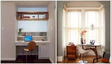 实景分析:针对飘窗等凹形区域,可以充分利用做成工作学习的区域或者定制一个大小适宜的收纳柜用于储物。