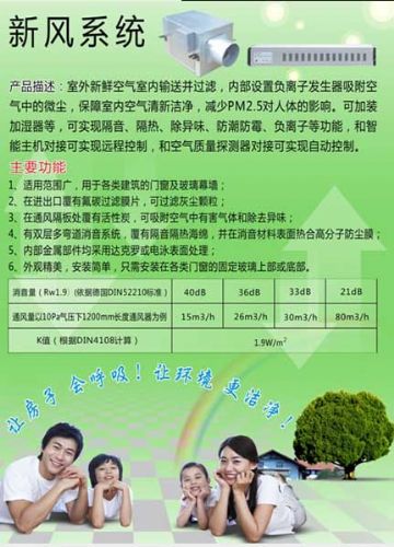我们所推出的智能新风系统已内置zigbee通讯协议,可与智能网关直接对接,手机上可以掌控室内环境质量和甲醛浓度,远程启动新风系统,将室外新鲜空气室内输送并过滤,内部设置负离子发生器吸附空气中的微尘,保障室内空气清新洁净,减少PM2.5对人体的影响。可加装加湿器等,可实现隔音、隔热、除异味、防潮防霉、负离子等功能。