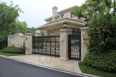 门,是别墅的颜值担当的一部分,一扇雕花大铁门,足以把你的住宅衬托得威严典雅,端庄大气。铁艺门由于常年暴露在外,很容易掉漆生锈,所以选择购买优质产品、注重保养很重要。一扇优质铁艺门,不仅具有防盗、间隔的普通作用,还能防弹、隔音、具艺术鉴赏价值,如皇家骑士·别墅门。