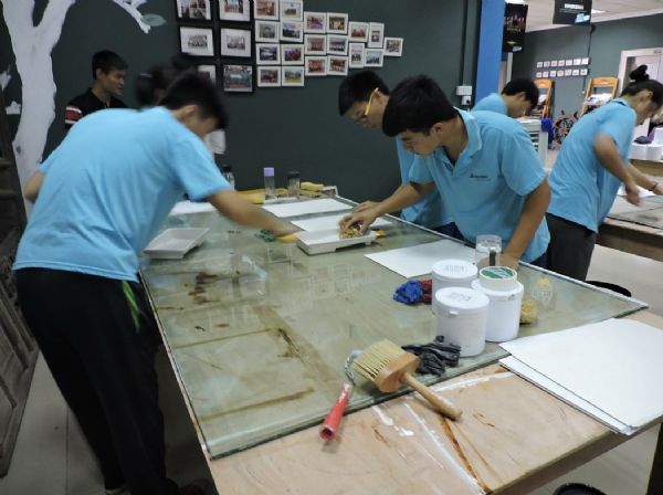 在学子们专注的神情里、专业的涂装工艺下,一块块的板材慢慢变成了一块块精美的样板,产品纹路清晰、色泽亮丽、手感饱满,让人爱不释手!